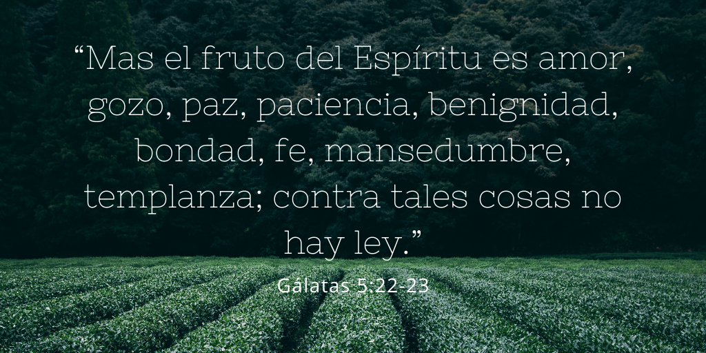 “Mas el fruto del Espíritu es amor, gozo, paz, paciencia, benignidad, bondad, fe, mansedumbre, templanza; contra tales cosas no hay ley.”